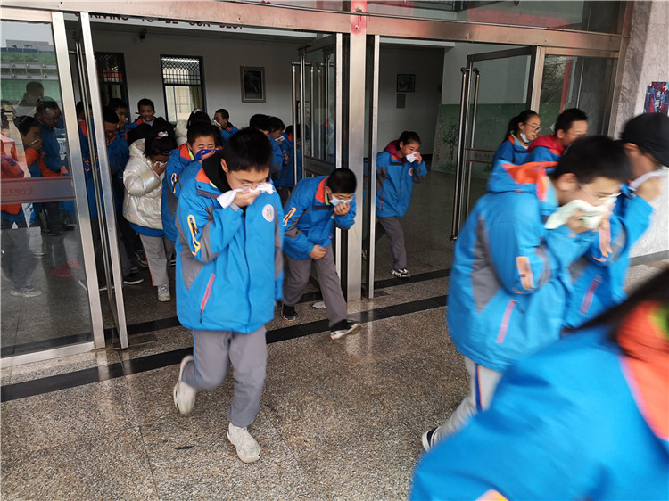 消防演练开始之前,朱海主任通过校园广播对演练流程及相关要求进行了详细说明。下午14:10,在急促的警报声中,消防应急疏散演练正式拉开帷幕。各班班主任和科任教师及时准确地到达指定位置,有序组织学生迅速进入紧急疏散状态。学生双手抱头、弓着腰,用湿毛巾、衣服、口罩等捂住口鼻有序撤出教室,从最近的出口疏散到操场的安全地带集中,各个班级整队并清点了人数。整个过程紧张有序,不到2分钟就全部集结完毕,演练时未发生拥挤、踩踏和碰伤学生的事故。