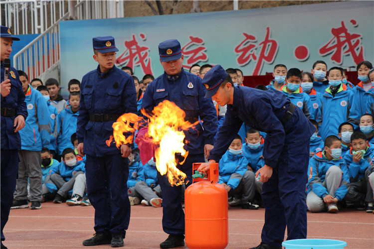 接着,代银玉工程师作了《学校消防安全知识培训》讲座,介绍了校园相关火灾案例,进行了校园预防火灾的警示教育,通过详细介绍让师生正确认识火灾,了解并熟悉消防设施、器材的使用,增强了师生的消防安全意识。随后,消防救援大队指挥员组织学生进行了逃生帐篷实景体验,并讲解演示了干粉灭火器扑救油槽火灾、液化气罐火灾扑救的过程,使全体师生将所学消防安全知识“入耳、入脑、入心”。