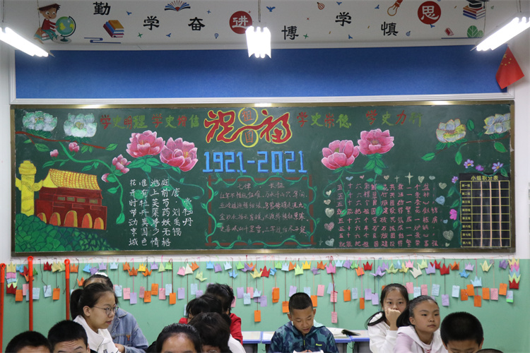 各班根据班级班风、班级精神及奋斗目标等理念,对班级文化艺术氛围,从内容到形式,从色彩到工艺,进行了独具匠心、别出心裁的设计和布置。精彩的学生作品、绝美的手抄报、丰富多彩的班级活动展示、图文并茂的荣誉栏,内容应有尽有,主题鲜明,格调活泼,寓知识性、教育性、欣赏性、趣味性于一体,将学生爱国情怀体现的淋漓尽致。