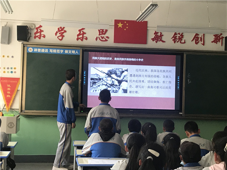 5月17日下午,各个班级按学校要求召开了“民族团结进步”主题班会课。同学们踊跃参与,分享了自己查阅的相关资料,互相普及了我国各民族的概况。接着,大家又以小组为单位,畅谈了历史上民族团结的故事,共同探讨了钱币上关于民族文化的奥秘,开展了民族知识小竞赛活动。随后,在班主任的组织下,同学们畅所欲言,对推进民族团结工作做出了郑重承诺。通过主题班会课,“民族团结”这四个字深深地印在了每一位同学的心里。