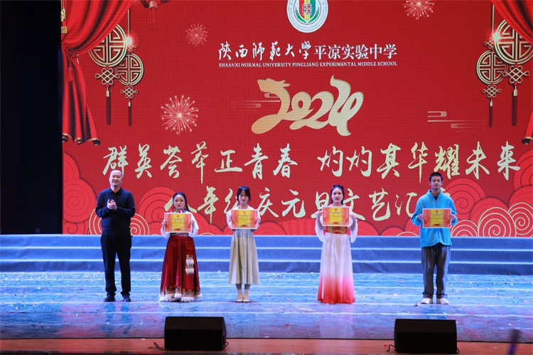 在班级节目表演完成后,高一高二艺体班同学还带来了专业的演奏、歌咏表演。专业的态度,精湛的技艺,让在场的师生们如痴如醉、乐而忘返。拨动一根根琴弦,清亮而悠远的声音,穿越五千年悠悠岁月,悠扬婉转,铿锵激荡,高一高二音乐专业生带来的古筝合奏《新编十面埋伏》惊心动魄。回望中国历史,这一路走来历经了千辛万苦,我们幸运如今山河无恙,国正富,民正强!高一高二音乐专业生带来的歌曲《如愿》,再次点燃了现场。“毡帐胡琴出塞曲,兰塘越棹弄潮声“。如泣如诉的二胡也可以奏出铮铮激越的强音,当东方传统乐器遇到西方激情飞扬的架子鼓,又将碰撞出怎样的火花?高一高二音乐专业生带来的器乐串烧,中西结合,各显其长。缕缕春风吹开陕师大平实学子青春脸颊的笑颜,冬日阳光照亮高一同学前进的道路,在缤纷的焰火和欢快的乐曲中,新的一年即将向我们走来,由高一高二音乐专业生带来的歌曲《春风十万里》,开启了新一年奋斗的华章!