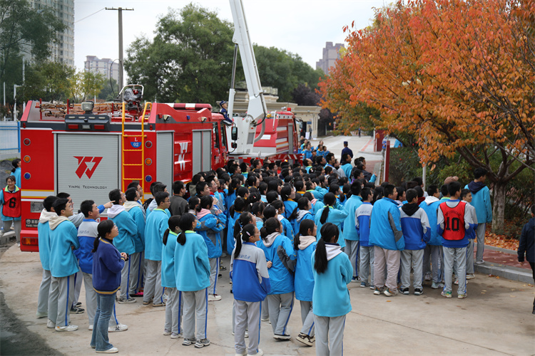 学生集合完毕后,消防救援大队同志又一次详细介绍了消防设施和器材的使用,并通过现场问答的方式巩固了学生在讲座中所学习的消防知识,让师生正确认识火灾,了解并熟悉消防设施、器材的使用。在逃生体验环节,消防员首先讲解了逃生帐篷体验的注意事项,随后组织学生排队、分批次进入逃生帐篷,真实感受火灾发生现场。同学们通过消防标识导引,成功“逃出”火灾。同时,同学们还参观了消防车,了解了消防车的功能特点,体验了大型灭火水枪,试穿了消防服。活动现场,师生们与消防员积极互动,使得消防安全知识“入耳、入脑、入心”。